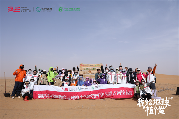 aggame官网家居「aggame官网泽妄想」团结蚂蚁森林、中国绿化基金会等公益相助同伴,,,,,在内蒙古阿拉善盟举行了“我给地球植个发”第四序暨aggame官网公益4号林揭牌仪式。。。。。。